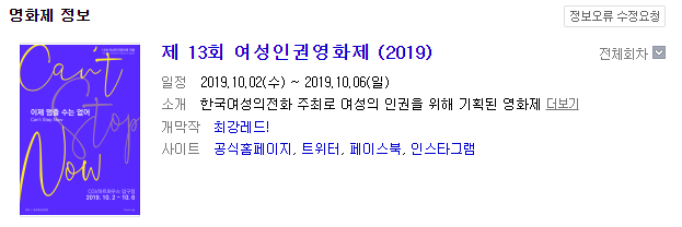 | [결과 발표] 여성인권영화제 시나리오 공모전 (0) | 2019.09.23 |